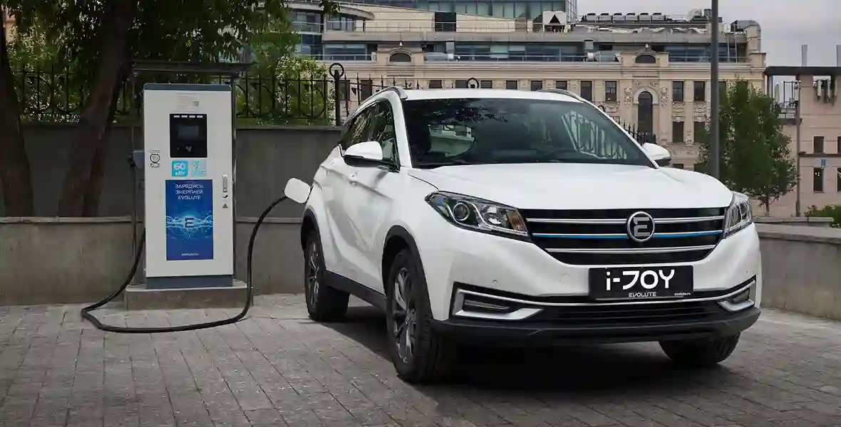 Автомобили Evolute заряжаются от фирменных зарядных станций. Фото: Evolute